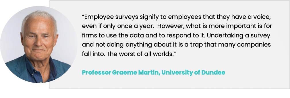 Of course, a significant part of conducting employee surveys is the handling of the feedback results and using the insights to make improvements. If a company fails to act on feedback, it can create frustration among employees, resulting in lower loyalty scores.