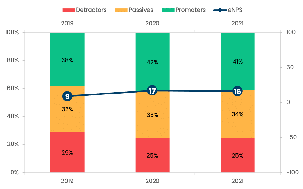 Employee loyalty development 2019-2021: A study of 190,000 eNPS responses