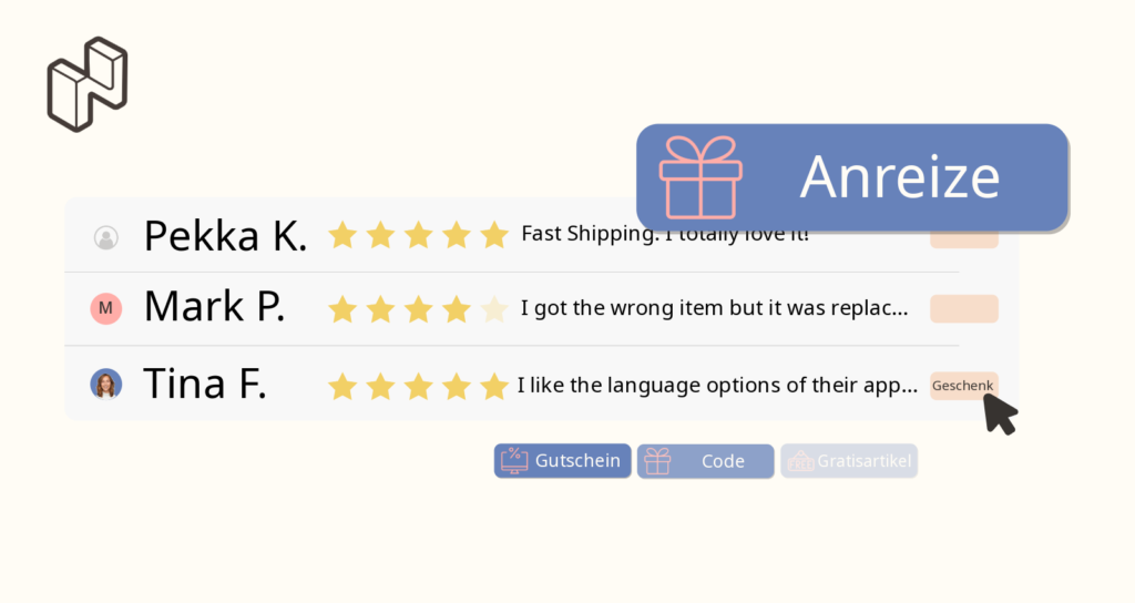 Vielleicht können Sie einen Rabatt auf den nächsten Einkauf oder eine Belohnung für die Anwerbung einer neuen Kund:in anbieten. Diese Angebote bieten mehrere Vorteile, wie z.B. die Förderung von Mehrfachkäufen und die Vergrößerung Ihres Kundenstamms.
