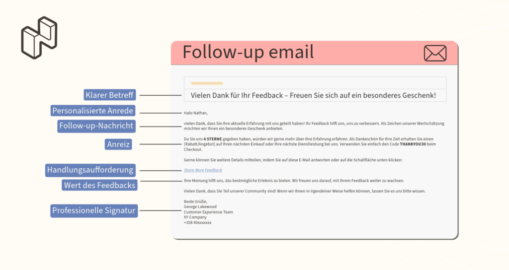 Diese Aufforderungen und Erinnerungen sind eine perfekte Gelegenheit für Ihr Unternehmen, die Antwortquote bei Umfragen zu maximieren und die bestmöglichen Einblicke in die Meinung Ihrer Kund:innen über Sie zu gewinnen.