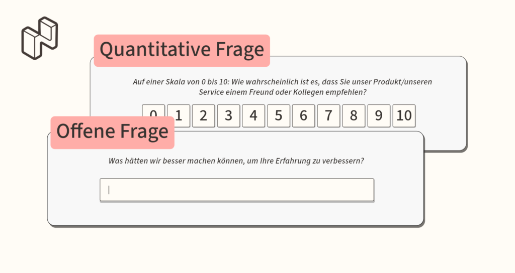 Quantitative (geschlossene) Fragen eignen sich hervorragend zur Ermittlung von Trends und zum Benchmarking wichtiger Kennzahlen, wie z.B. Kundenzufriedenheit oder Net Promoter Score (NPS). Diese Fragen sind strukturiert, leicht zu analysieren und helfen Ihnen, die Performance in großem Stil zu verfolgen.