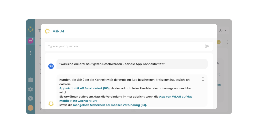 Sobald Sie die Antworten Ihrer Kund:innen erfasst haben, ist es an der Zeit, Ihre Ergebnisse zu analysieren. In der Vergangenheit hätte dies bedeutet, dass Sie jede einzelne Antwort manuell durchgehen. Sie hätten die Ergebnisse mit Hilfe von Datenanalysetechniken, die von Menschen durchgeführt wurden, ermitteln müssen, um Erkenntnisse zu gewinnen.