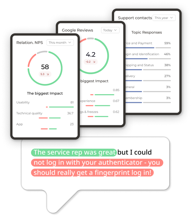 Go beyond metrics like NPS, CSAT, CES and eNPS by analysing open text feedback and experience data to uncover the themes and drivers behind your scores.