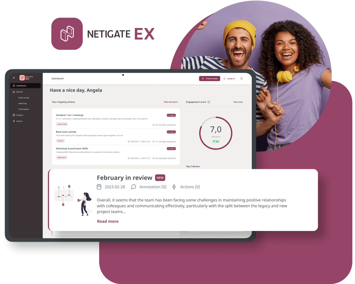 Kartlegg hvordan medarbeiderne har det, identifiser problemområder og få anbefalinger om hvordan du kan forbedre engasjementet.