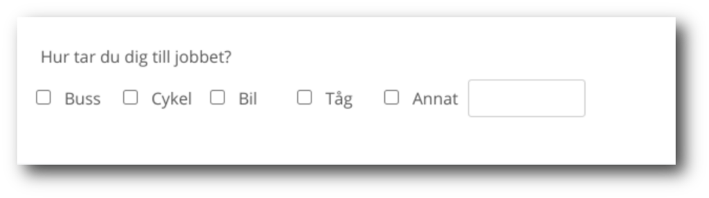 Radioknappar här ger du din medarbetare möjlighet att att endast välja ett svar från en rad förutbestämda svarsalternativ. Dessa används då endast ett av fler möjliga svarsalternativ får väljas.