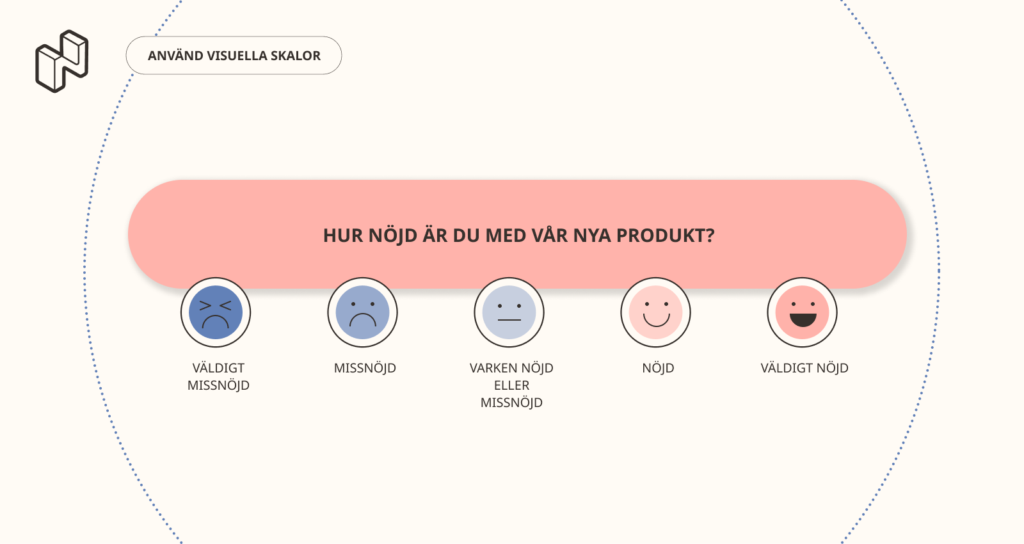 - Använd visuella betygsskalor. För frågor som involverar nummerbaserade skalor – till exempel “Betygsätt detta från 1–10” – kan stjärnor, sliders eller emojis användas för betygsättning.