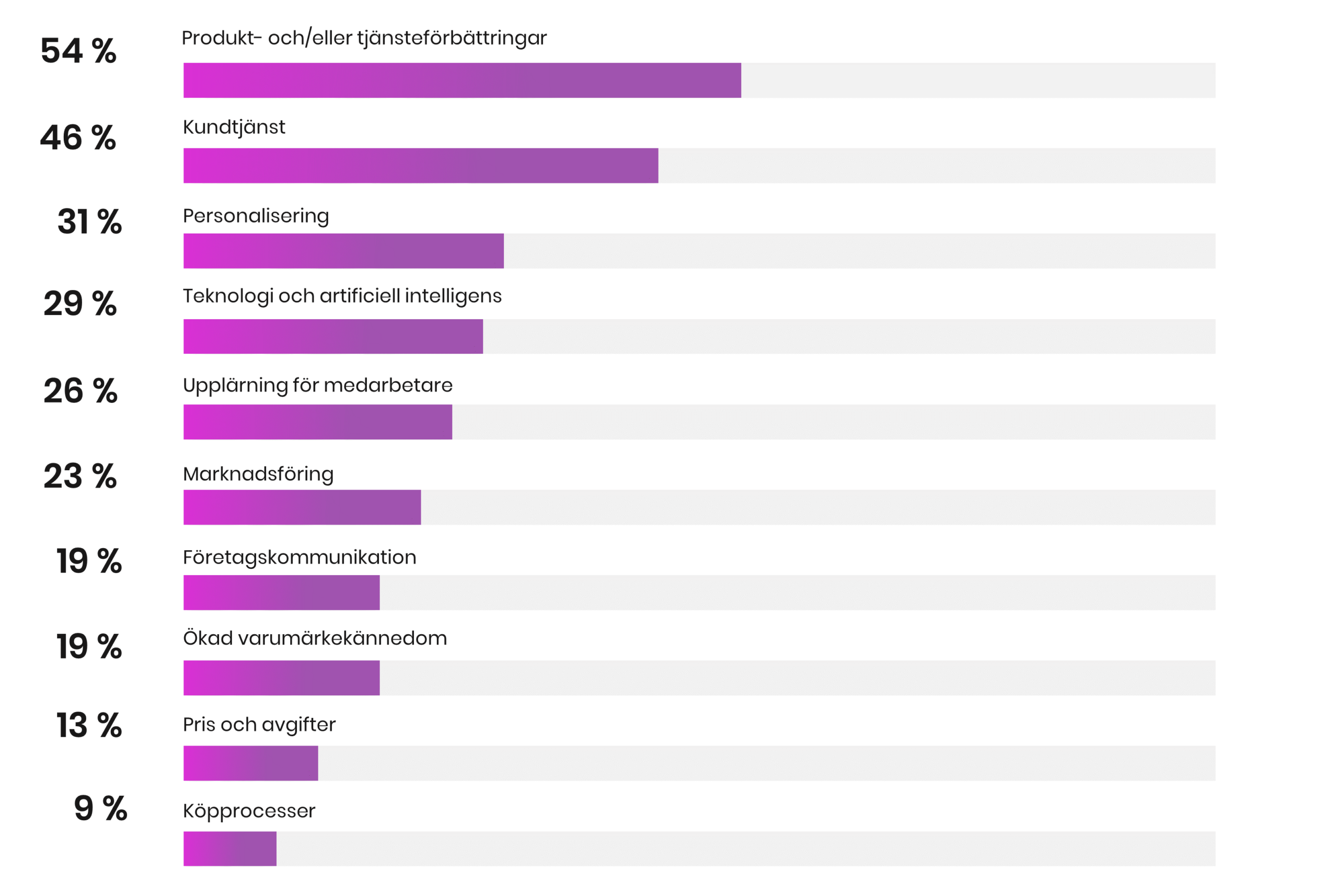 Trend 4: Det främsta fokusområdet för att förbättra kundupplevelsen är produkt-och/eller tjänsteförbättringar.