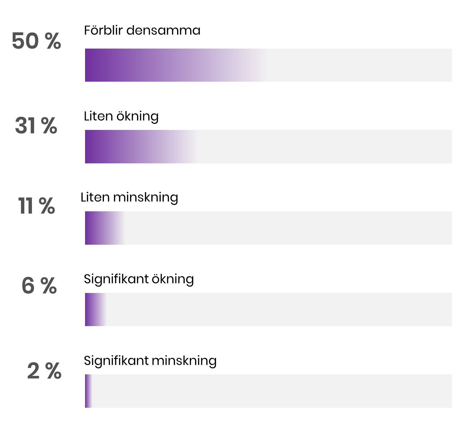 Endast 2 % av de svarande uppgav att deras budget skulle minskas avsevärt.