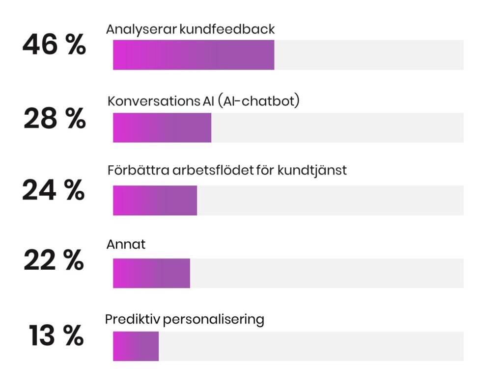 Enligt undersökningen använder 46% av CX-proffs AI för att analysera kundfeedback.