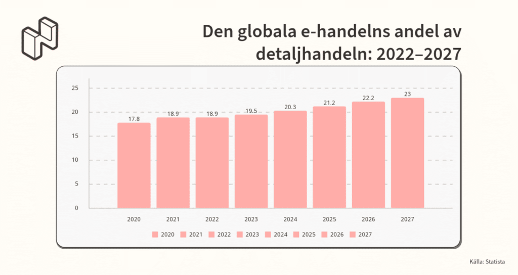 Ett exempel för att illustrera den snabba tillväxten inom e-handeln: I september 2024 deltog 2,71 miljarder människor världen över i näthandel. Det innebär att drygt en tredjedel av världens befolkning använder sig av e-handel för att tillgodose sina behov – en ökning med 2,7 % jämfört med för 12 månader sedan. Experter förutspår att denna andel kommer att stiga till 49,1 % år 2029, vilket motsvarar 3,9 miljarder människor som handlar online i slutet av årtiondet.