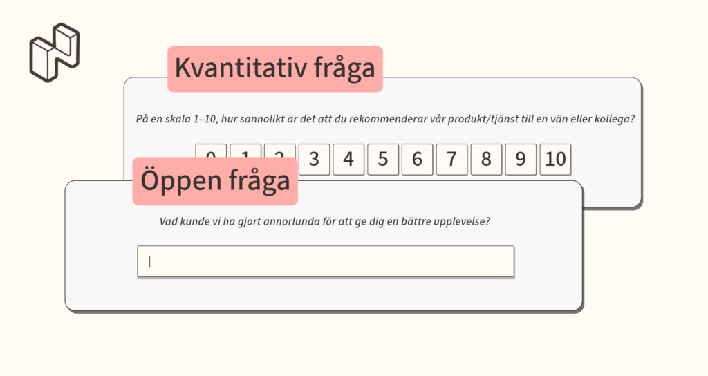 Kvantitativa (slutna) frågor är utmärkta för att identifiera trender och benchmarka nyckeltal, till exempel kundnöjdhet eller Net Promoter Score (NPS). Dessa frågor är strukturerade, lätta att analysera och hjälper dig att spåra prestanda i stor skala.