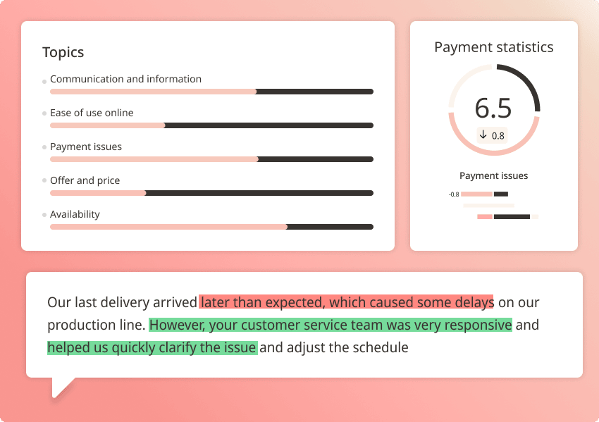 Feedback inom tillverkningsindustrin är ofta detaljerad och tekniskt komplex, vilket kan göra det svårt att avgöra vad som faktiskt har störst betydelse och var insatser bör prioriteras. Med rätt plattform kan team identifiera mönster i kundkommentarer genom att se vilka problem som förekommer oftast, vilka tekniska teman som påverkar kundnöjdheten mest och hur utfallet skiljer sig mellan regioner, produktionsanläggningar eller produktlinjer.