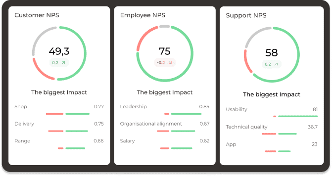 Netigate samlar alla kundinsikter i en och samma plattform och ger dig en helhetsbild av prestation över regioner, produktlinjer och kundsegment. Det gör det möjligt att prioritera åtgärder baserat på helhet och agera där det gör störst skillnad.
